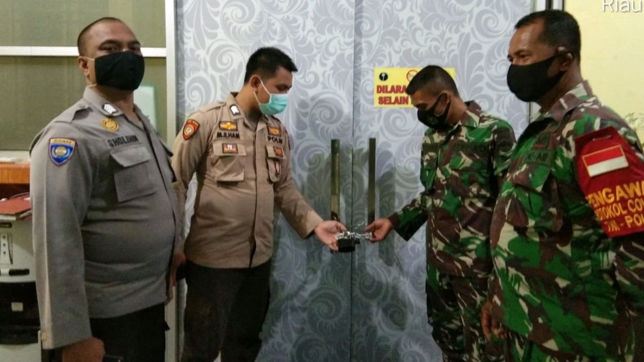 Kampar, reportaseindonesia.id | Gudang penyimpanan Vaksin Covid-19 di kantor Dinas Kesehatan Kabupaten Kampar, dijaga ketat oleh personel TNI-POLRI dari Koramil 01/Bkn personil Kodim 0313/Kpr Serka Syamsurizal beserta tiga rekan lainya dan personil Polsek Bangkinang kota, Kabupaten Kampar, Provinsi Riau, Jum’at (12/02/2021)