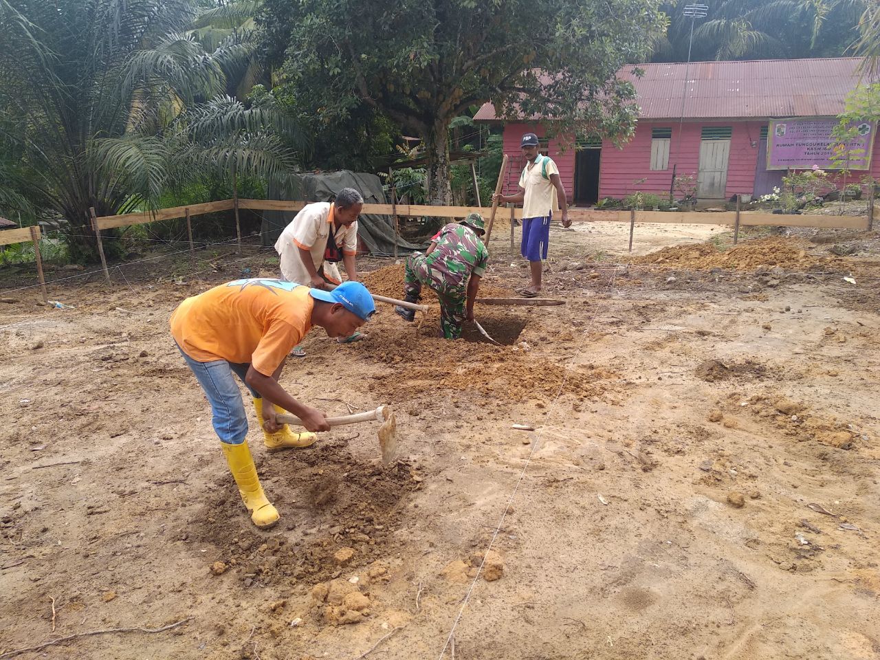 Pelalawan,reportaseindonesia.id | Guna mewujudkan kemanunggalan antara Babinsa dan warga yang ada didaerah binaan, Babinsa Koramil 09/Langgam Kodim 0313/KPR, Serda Adi Akmal membantu warga yang sedang membangun pondasi rumah milik bapak Syahbudin warga Kelurahan Kerinci Barat, Kecamatan Pangkalan Kerinci, Kabupaten Pelalawan, Provinsi Riau, Jumat (12/3/2021).