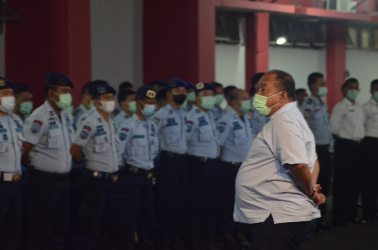 Kepala Kesatuan Pengamanan Lapas, Agung Nurbani, menyampaikan arahan kepada seluruh petugas yang akan melakukan sidak.