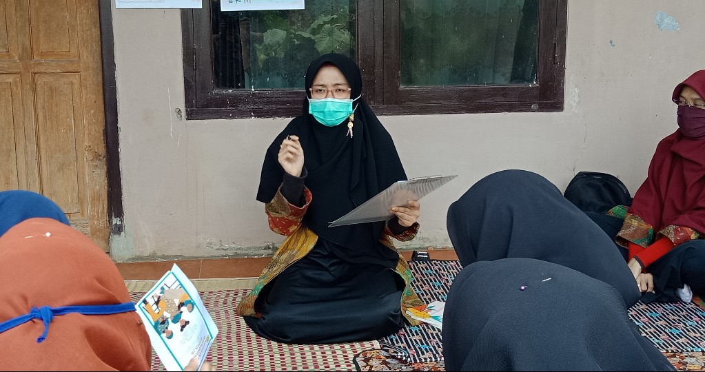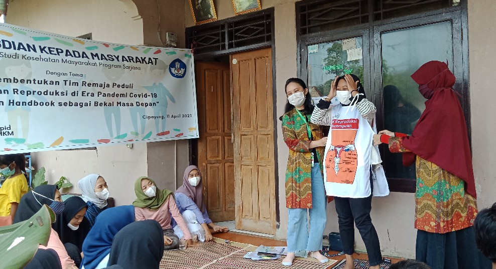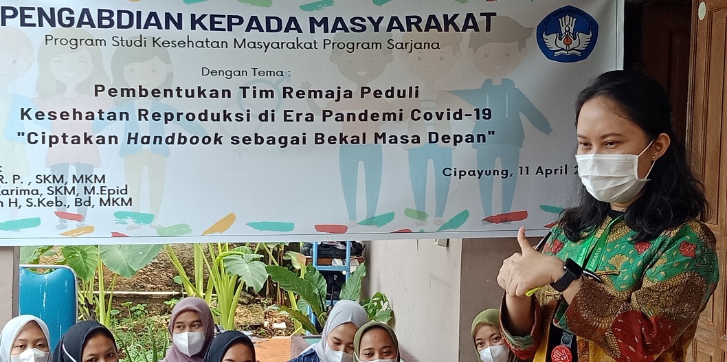 Tim Dosen UPNVJ yang terdiri dari Terry Yuliana R.P., SKM, MKM bersama Ulya Qoulan Karima, SKM, M.Epid dan Chahya Kharin H, S.Keb, Bd, MKM serta didampingi dua mahasiswi UPNVJ Arnur Oktafiyanti, Nadia Ramadhanty mengambil tema ‘pembentukan tim remaja peduli kesehatan reproduksidi era pandemi Covid-19 “Ciptakan Handbook sebagai Bekal Masa Depan”.