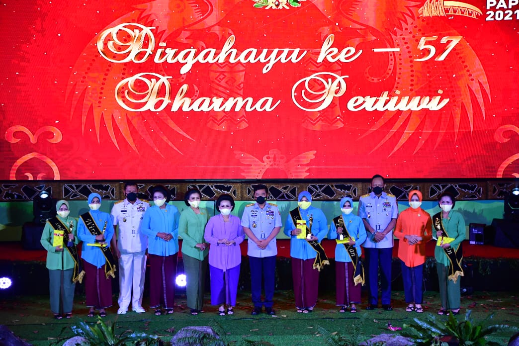 Kegiatan yang mengusung tema “Dharma Pertiwi Berperan Serta Mewujudkan Keluarga Tangguh, Produktif dan Inovatif di Masa Pandemi Covid-19 Menuju Indonesia Maju”, ini juga dihadiri Kasad Jenderal TNI Andika Perkasa, S.E., M.A., M.Sc., M.Phil., Ph.D., dan Ny. Hetty Andika Perkasa, serta Kasau Marsekal TNI Fadjar Prasetyo., S.E., M.P.P., dan Ny. Inong Fadjar Prasetyo.