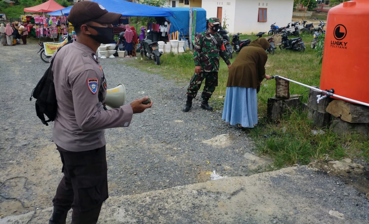 ” Operasi gabungan yang digelar pada hari ini untuk memberikan himbauan kepada warga masyarakat yang ada didalam pasar, baik pedagang maupun pembeli terkait penggunakan masker.