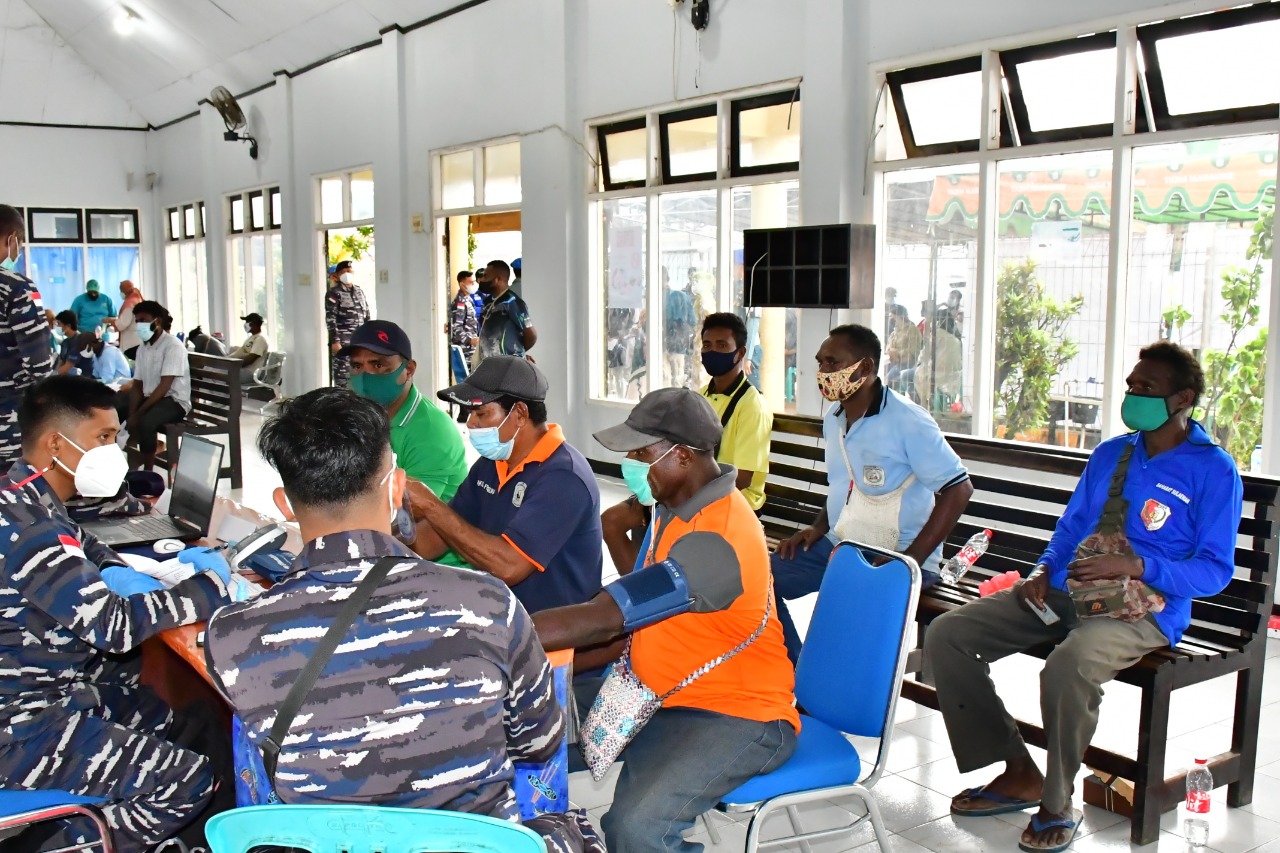 Jakarta,reportaseindonesia.id | Tentara Nasional Indonesia Angkatan Laut (TNI AL) yang dilaksanakan Pangkalan Utama TNI Angkatan Laut (Lantamal) XI Merauke melaksanakan serbuan vaksinasi masyarakat maritim di wilayah Merauke. Kegiatan vaksinasi ini TNI AL bekerja sama dengan Korem 174/Atw, Dinas Kesehatan Merauke, KSOP Merauke, Pelindo IV Merauke, KKP Merauke dan Dokkes Polres Merauke, Kamis (01/07). Serbuan Vaksinasi Covid-19 yang diperuntukan masyarakat yang tinggal di wilayah pesisir ini digelar di dua lokasi yakni Kampung Bahari Nusantara (KBN) Pantai Lampu Satu dan Kantor Pelabuhan Umum Yos Sudarso, Kota Merauke.