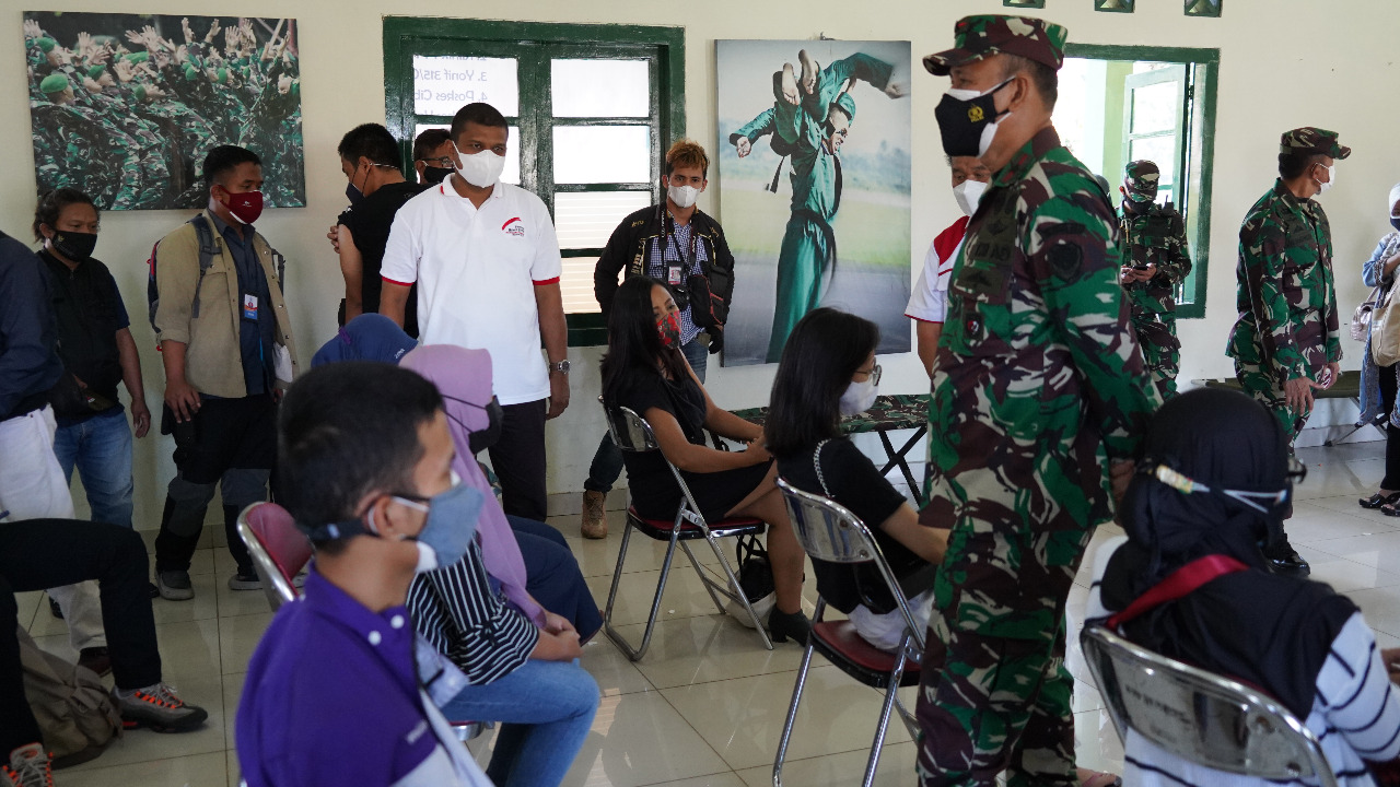 “Jadi bagi siapapun yang ingin divaksin, bisa datang langsung ke tempat yang telah kami tentukan hanya dengan membawa kartu identitas. Dan kami berharap, dengan disediakannya tempat pelayanan vaksinasi ini dapat memudahkan warga masyarakat yang akan mengikuti vaksinasi Covid-19, dan kami juga terus mengimbau kepada seluruh masyarakat baik yang tua maupun yang muda untuk mengikuti program ini, karena dapat dipastikan bahwa vaksin Covid-19 yang diberikan oleh pemerintah untuk seluruh rakyat Indonesia dipastikan aman. Hanya saja semua tetap harus mengikuti sesuai prosedur yang telah ditetapkan, misalnya pemeriksaan kesehatan dan screening. Keduanya itu untuk mengetahui apakah kondisi tubuh seseorang tersebut bisa menerima dosis vaksin atau tidak, jadi apabila kondisi sedang tidak fit ataupun memiliki riwayat penyakit bawaan ada baiknya disampaikan terhadap petugas vaksinasi, hal tersebut tentunya agar dapat dipastikan lagi apakah saat ini bisa divaksin atau belum, ” jelas Danrem.