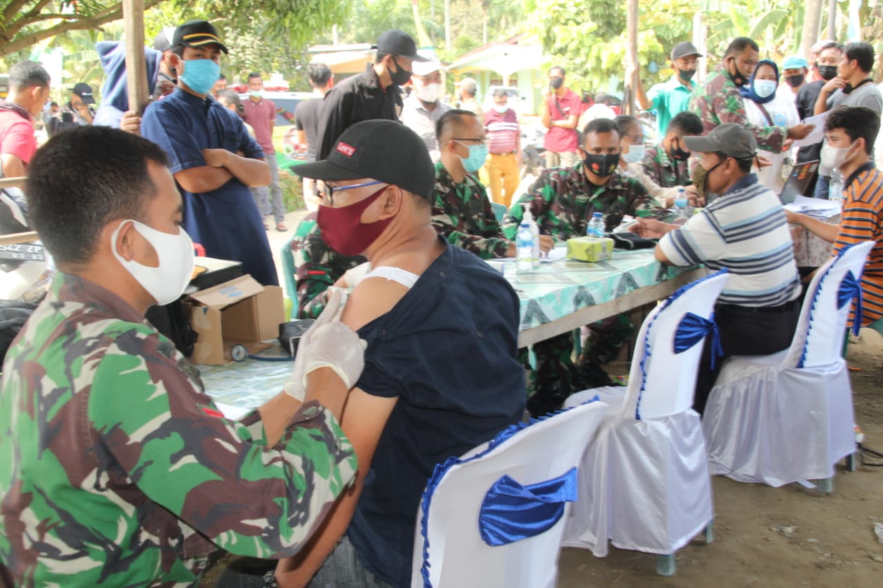 Kampar, reportaseindonesia.id | Kodim 0313/ KPR serta Yonif 132/Bima Sakti dan bekerjasama dengan Dinas Kesehatan Kabupaten Kampar melaksanakan Program Serbuan Vaksinasi Covid- 19 Tahap II yang dilaksanakan di