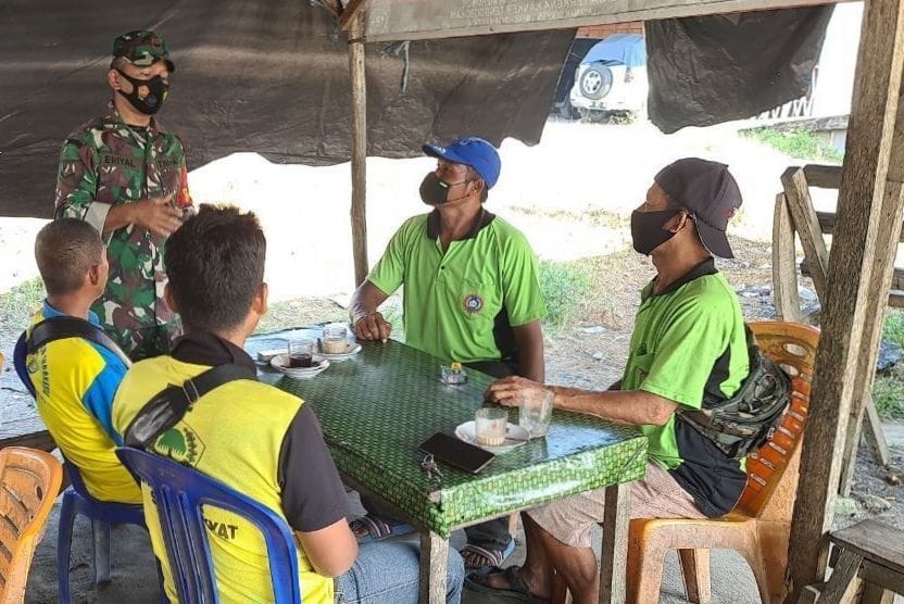 Pelalawan, reportaseindobesia.id | Babinsa Koramil 04/PKL Kuras,Kodim 0313/Kpr Serda Eriyal selalu mengingatkan kepada warga melalui kegiatan komsos (komunikasi sosial) agar selalu mengikuti protokol kesehatan (Prokes) yang telah di tetapkan oleh pemerintah pusat maupun oleh pemerintah daerah untuk mencegah penyebaran Covid-19.