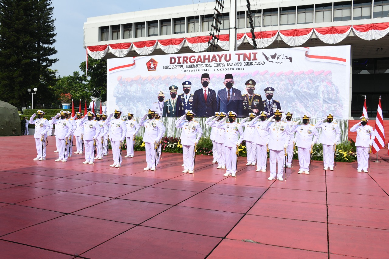 Jakarta,reportaseindonesia.id | Pejabat Teras TNI Angkatan Laut mengikuti jalannya Upacara HUT ke-76 TNI secara virtual dari Plaza Gedung Utama R.E. Martadinata, Mabesal, Cilangkap Jakarta Timur. Selasa, (5/10), dipimpin Wakil Kepala Staf Angkatan Laut (Wakasal) Laksamana Madya TNI Ahmadi Heri Purwono, S.E., M.M., dan diikuti Danpushidrosal Laksamana Madya TNI Agung Prasetiawan, M.A.P., Irjenal Laksamana Muda TNI Sunaryo, CFrA., para Asisten dan para Kepala Dinas di Jajaran Mabesal.