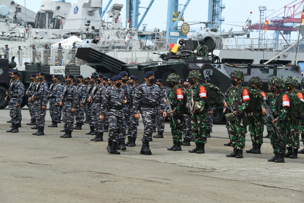 Jakarta,reportaseindonesia.id | Latihan Operasi Amfibi (Latopsfib) yang digelar TNI Angkatan Laut ini merupakan latihan puncak sehingga bentuk latihan ini bersifat gabungan dari Sistem Senjata Armada Terpadu (SSAT) yakni KRI (Kapal Perang Republik Indonesia), Pesawat Udara (Pesud), Marinir dan Pangkalan. Demikian disampaikan Kepala Staf Angkatan Laut (Kasal) Laksamana TNI Yudo Margono, S.E., M.M., dihadapan media seusai menjadi Inspektur Upacara (Irup) Apel Gelar Pasukan dalam rangka Latopsfib tahun 2021 di Dermaga Jakarta International Container Terminal (JICT) II, Tanjung Priok, Jakarta, Jumat (22/10).