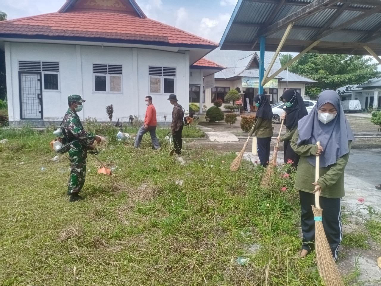 Serma Muklis mengatakan pembersihan di seputaran halaman Kantor Desa di wilayah binaannya ini dilakukan dengan secara swadaya dan dan juga secara manualĀ dengan membawa alat kerja seadanya.