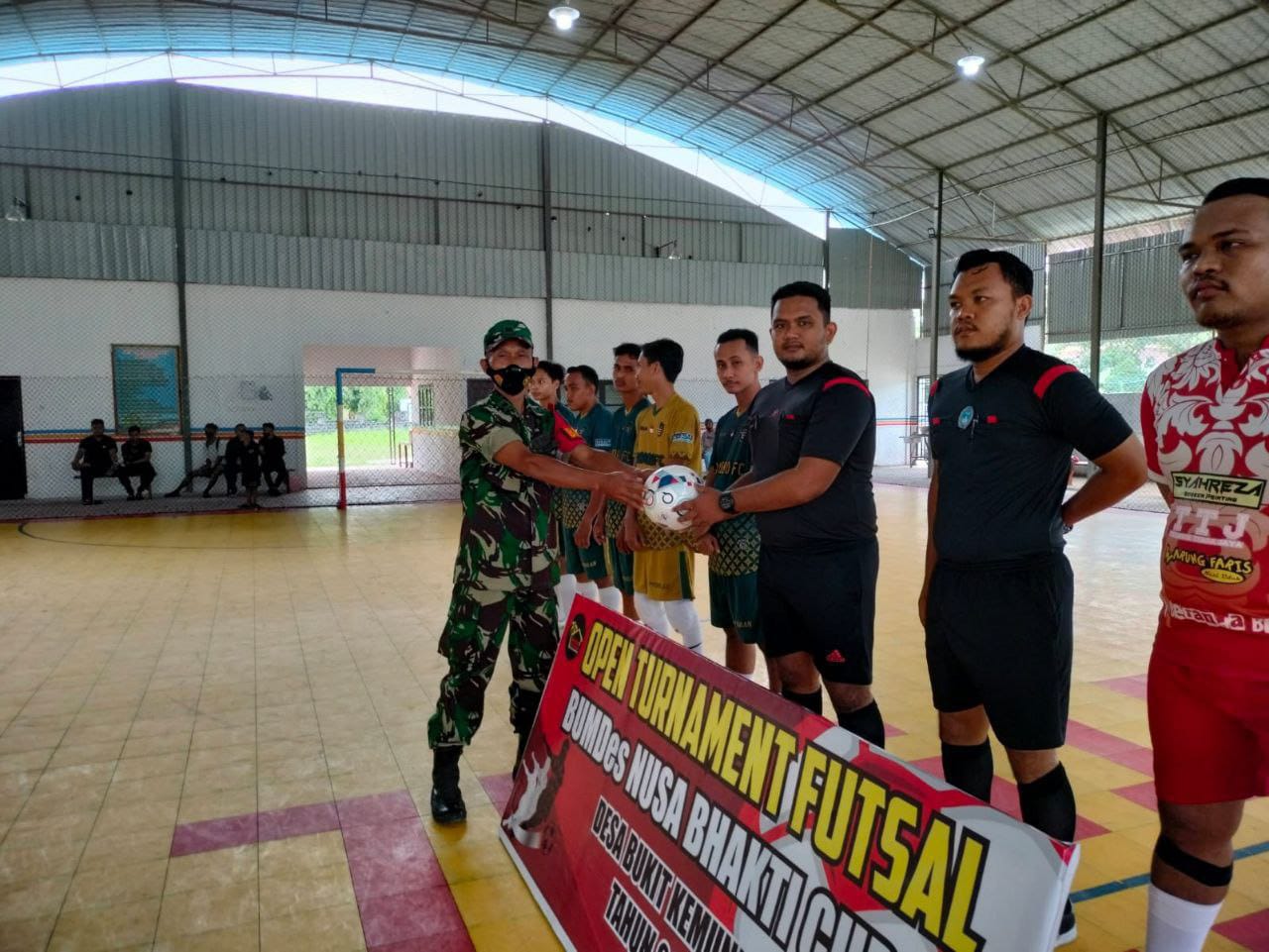 Terkait hal tersebut, Peltu Suriadi Babinsa Koramil 16/Tapung Kodim 0313/Kampar bersama Bhabinkamtibmas menghadiri pembukaan turnamen Futsal BUMdes Nusa Bhakti Cup-1 yang diselenggarakan di Desa Bukit Kemuning Kecamatan Tapung Hulu Kabupaten Kampar. Rabu (29/12/2021).