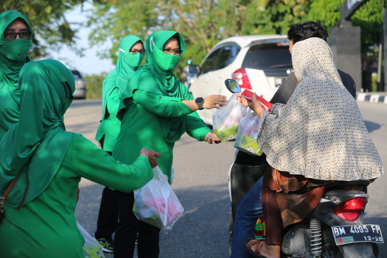 Pembagian takjil yang dilakukan oleh Ny. Eka Sulistiawati Muliyadi bersama pengurus Persit Kartika Chandra Kirana Cab LIII Kodim 0313/KPR ini dalam rangka berbagi di bulan Suci Ramadhan.