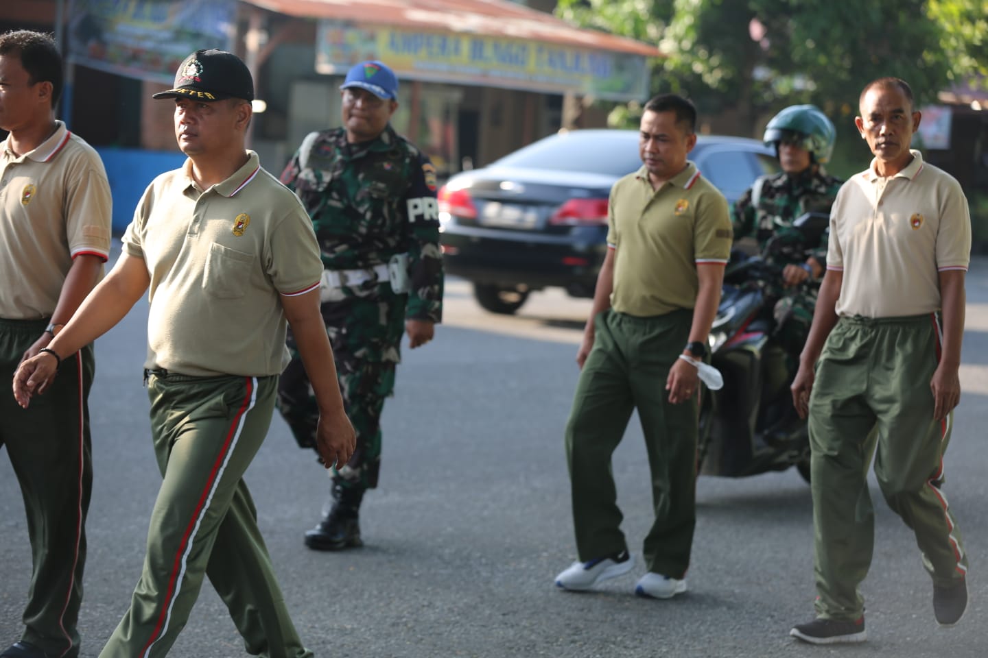 Kampar, reportaseindonesia.id |Anggota Kodim 0313/KPR melaksanakan olah raga jalan santai di seputaran Bangkinang Kota, Kabupaten Kampar, Jumat (13/5/2022).