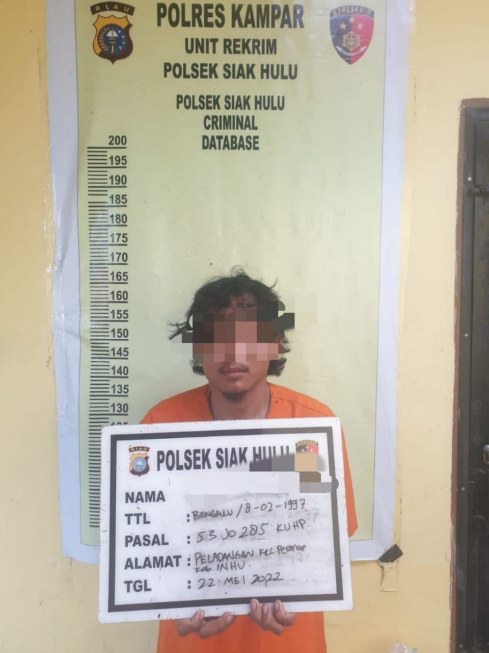 Pelaku adalah DH (25) warga Desa Peladangan, Kecamatan Batang Peranap, Kabupaten Inhu. Pelaku di serahkan warga pada Polsek Siak Hulu untuk mempertanggung jawabkan perbuatannya.