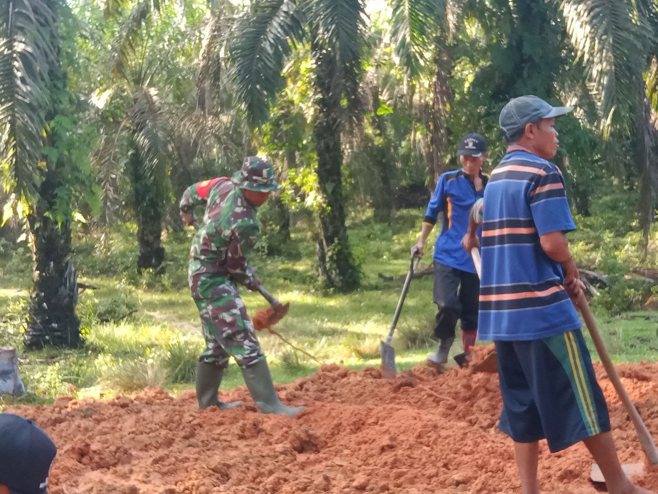 Kampar, reportaseindonesia.id | Sertu Harjono Babinsa Koramil 16/Tapung Kodim 0313/Kampar bersama warga masyarakat melaksanakan kegiatan gotong royong membersihkan jalan serta menutup lubang-lubang di jalan umum menggunakan tanah, yang dilaksanakan di Desa Tapung Makmur Kecamatan Tapung Hilir Kabupaten Kampar. Selasa (24/05/2022).