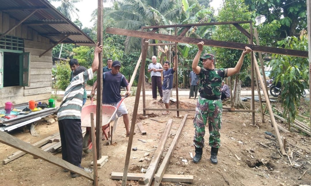 Rokan Hulu, reportaseindonesia.id |Sebagai wujud kemanunggalan TNI dengan Rakyat, dalam hal ini Babinsa Koramil 11/Tambusai, Pelda MS. Zuhri meluangkan waktu untuk membantu pembangunan rumah milik salah seorang warga binaannya di Kelurahan Tambusai Tengah ,Kecamatan Tambusai ,Kabupaten Rokan Hulu , Jum’at (27/5/2022).