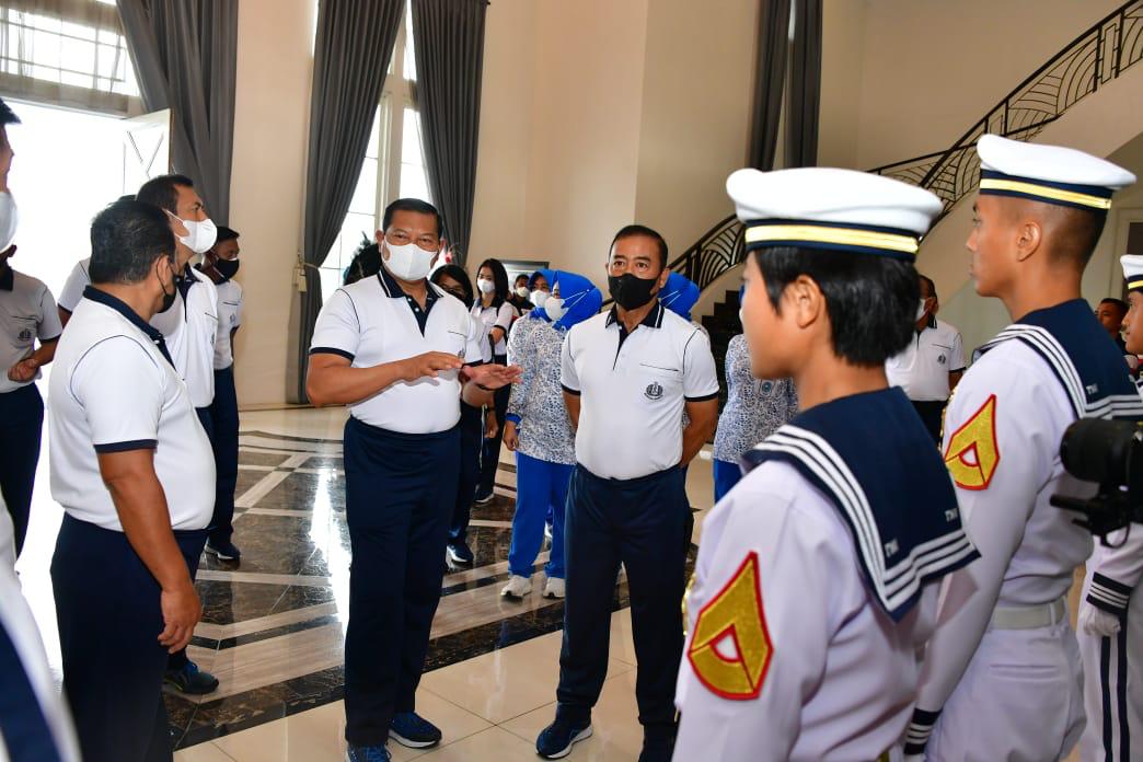 Dalam kesempatan tersebut Kasal didampingi Ibu Taruna AAL Ny. Vero Yudo Margono juga berkesempatan menerima penjelasan tentang tenue Matros yang merupakan tenue baru Taruna tingkat I untuk pesiar, melaksanakan olahraga bersama dengan Taruna Taruni AAL serta meninjau sarana prasarana yang ada di Komplek Kesatrian AAL.