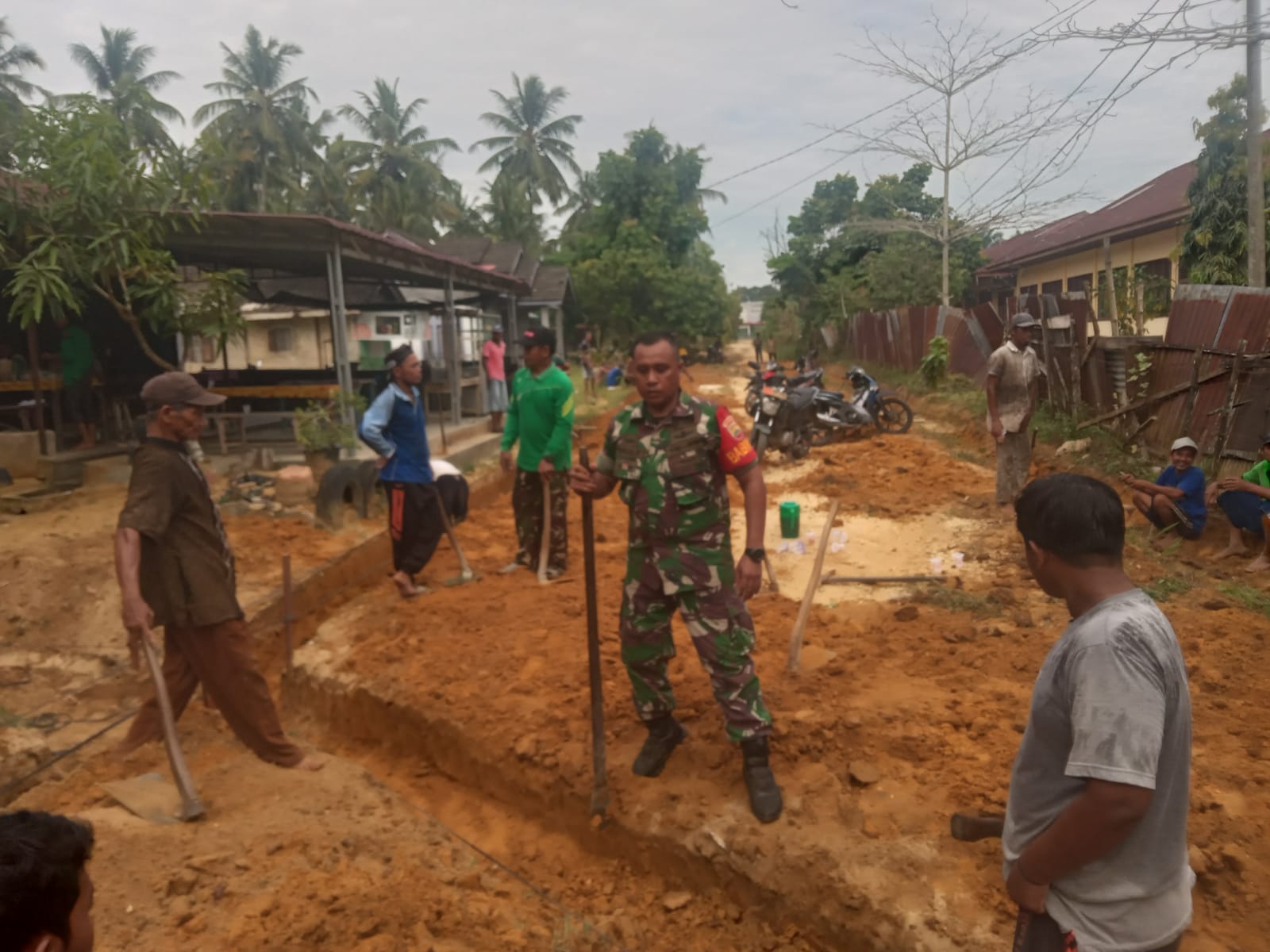 Bersama Warga, Babinsa Koramil 05/KK, Koptu Agus Riono Perbaiki Jalan De