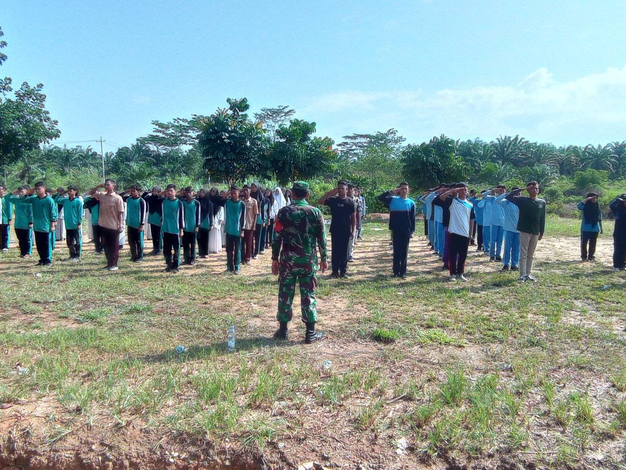 Rokan Hulu, reportaseindonesia.id |Babinsa Koramil 13/Rokan Kodim 0313/Kpr Serka Arnizam memberikan wawasan kebangsaan dan PBB diikuti oleh siswa SMKN 1 Rokan IV Koto bertempat di lapangan sekolah, Kecamatan Rokan IV Koto, Kabupaten Rohul. Sabtu(16/07/2022).