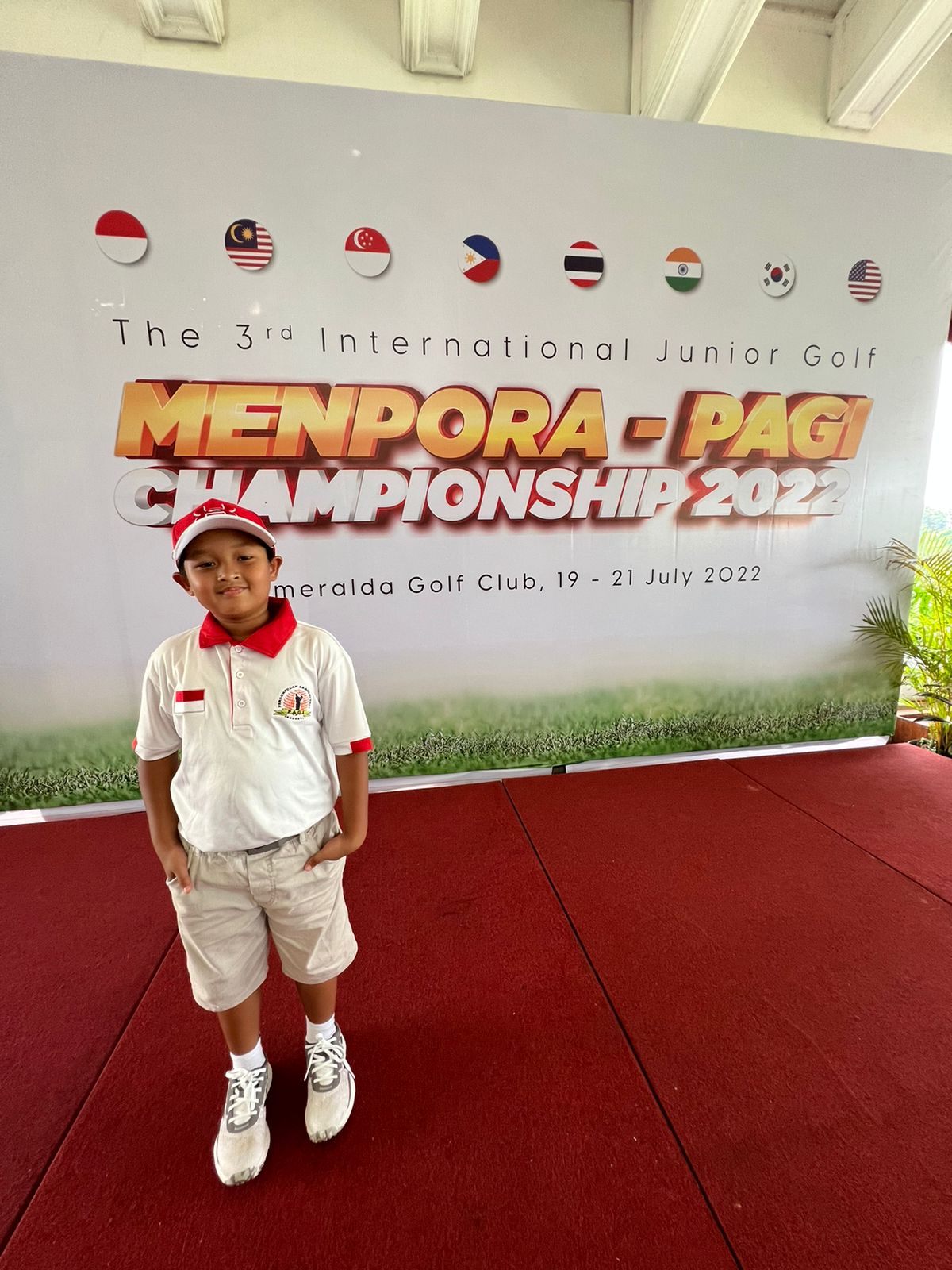 Rakha Faiz Hamzah, putra Ketua Komisi A DPRD Kota Depok, Hamzah mengikuti gelaran Tournamen Internasional Junior Golf, Piala Menpora, Selasa – Kamis (19-21/7/2022).