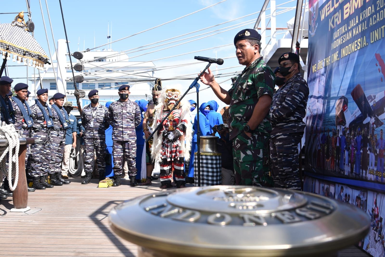 Surabaya,reportaseindonesia.id|Dalam rangka melaksanakan pelayaran operasi diplomasi muhibah duta bangsa dalam rangka mendukung latihan praktek pelayaran Kartika Jala Krida (KJK) Taruna AAL Angkatan Ke-69 tahun 2022, Wakil Kepala Staf Angkatan Laut (Wakasal) Laksdya TNI Ahmadi Heri Purwono didampingi Pangkoarmada II Laksda TNI T.S.N.B. Hutabarat dan Gubernur AAL Laksda TNI Denih Hendrata melepas keberangkatan Kapal Latih TNI Angkatan Laut (TNI AL) jenis Barquentine KRI Bima Suci yang bertempat di Dermaga Madura, Ujung, Surabaya, Selasa (19/7) yang ditandai dengan pelepasan tali tambat terakhir KRI Bima Suci secara simbolis oleh Wakasal.
