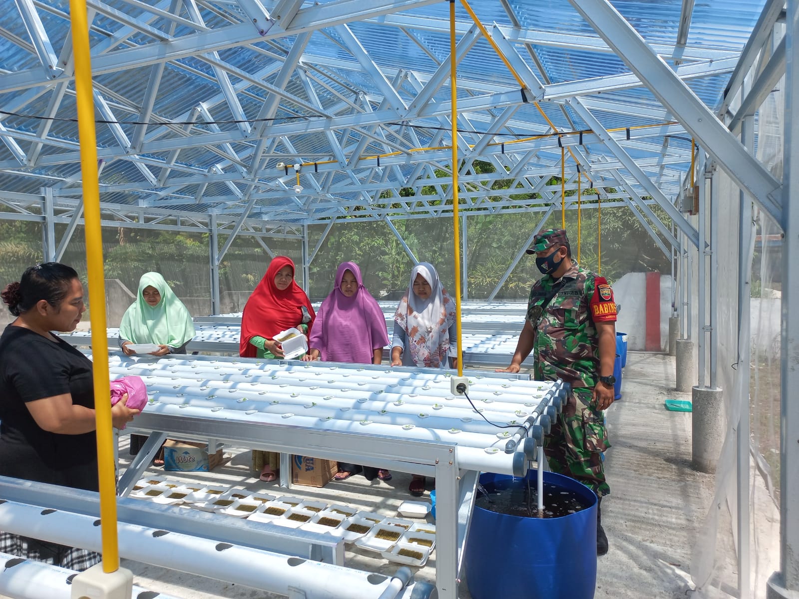 Sementara ditempat terpisah Danramil 11/Tbs Kapten Inf Lilik Haryono saat di konfirmasi menyampaikan bahwa, dalam menjalin komunikasi antara aparat Komando Kewilayahan dengan masyarakat bisa dilakukan di mana saja. Seperti yang dilakukan Praka Kardova Sinaga, dengan melakukan Komunikasi Sosial (Komsos) dengan para Ibu Ibu PKK Desa Simpang Harapan yang sedang merawat tanaman sayuran secara Hidroponik.