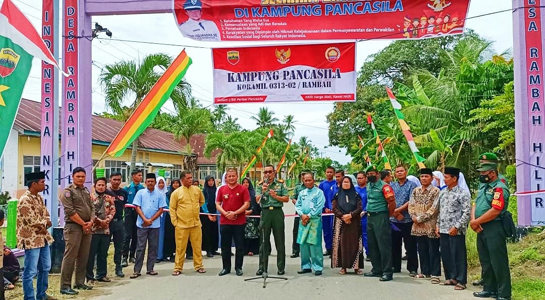Rokan Hulu,reportaseindonesia.id| Hari ini, Danramil 02 Rambah Kodim 0313/KPR Kapten Inf Taufik Sihombing meresmikan Kampung Pancasila di Desa Rambah Hilir Kecamatan Rambah Hilir Kabupaten Rokan Hulu.
