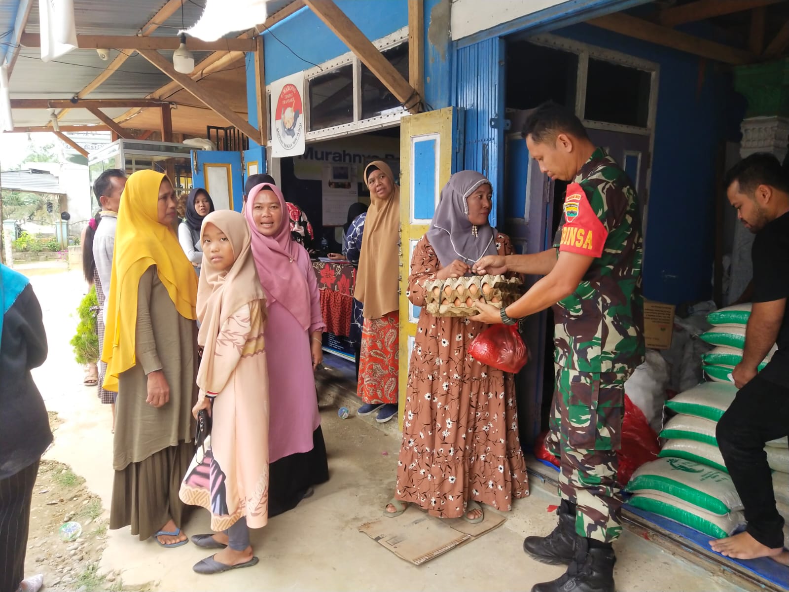 Kampar, reportaseindonesia.id |Guna memastikan penyaluran sembako berjalan aman dan lancar, Babinsa Koramil 01/Bkn Kodim 0313/Kpr Serda Supriadi Bersama Bhabinkamtibmas membantu membagikan bantuan Program Keluarga Harapan (PKH) di Desa Silam, Kecamatan Kuok Kabupaten Kampar, Sabtu (20/08/2022).
