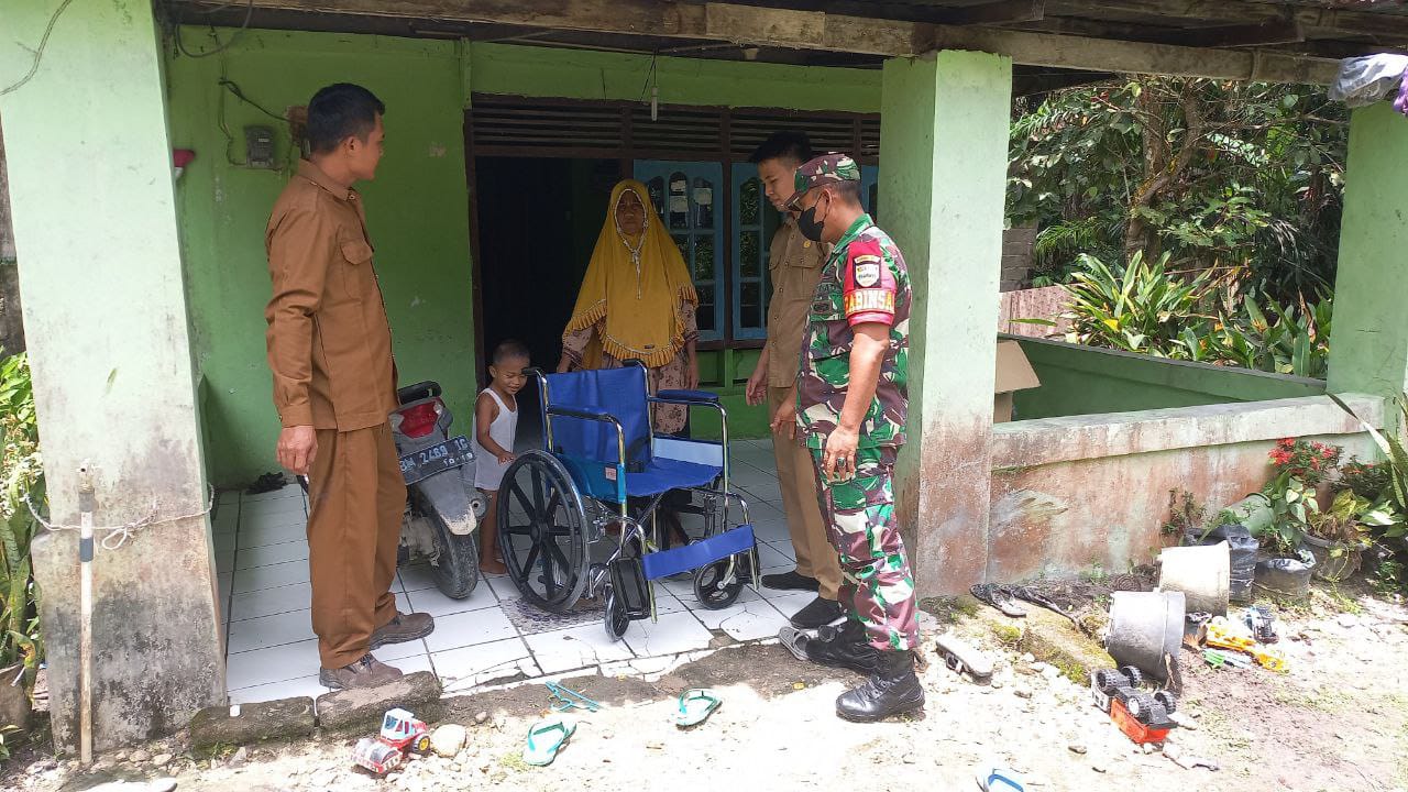 Babinsa Koramil 04/Pkl Kuras Dampingi Pemdes Salurkan Bantuan Kursi Roda Untuk Warga Kurang Mampu