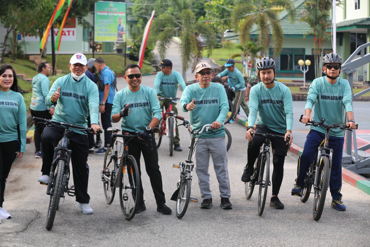 Kampar, reportaseindonesia.id |Dalam rangka menyambut Hari Ulang Tahun (HUT) Tentara Nasional Indonesia (TNI) Ke-77 yang jatuh pada tanggal 5 Oktober 2022 mendatang, Kodim 0313/KPR menggelar olahraga sepeda santai (Gowes ) bersama forkopimda kabupaten Kampar yang di ikuti seluruh anggota kodim 0313/KPR, Polres Kampar, Yonif 132/Bima Sakti, Komunitas sepeda Bangkinang serta masyarakat yang ada di seputaran kota Bangkinang, Kabupaten Kampar, Provinsi Riau, Jumat (30/9/2022).
