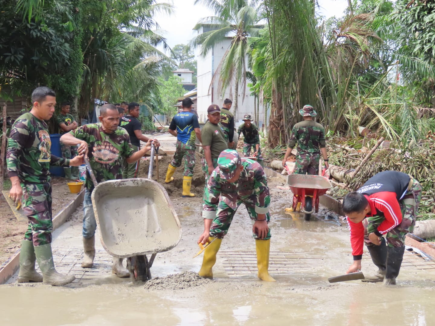 Pelalawan, reportaseindonesia.id |Kegiatan TNI Manunggal Masuk Desa (TMMD) Ke-115 tahun 2022 di Kelurahan Teluk Meranti, Kecamatan Teluk Meranti, Kabupaten Pelalawan dimana salah satunya yaitu pengerjaan semenisasi jalan di jalan pemuda serta jalan pesisir sungai Kampar disamping SDN 013 RT/ 16 Kel teluk Meranti ,Kecamatan Teluk Meranti dengan ukuran 4 meter x 129 meter dan pengerjaannya