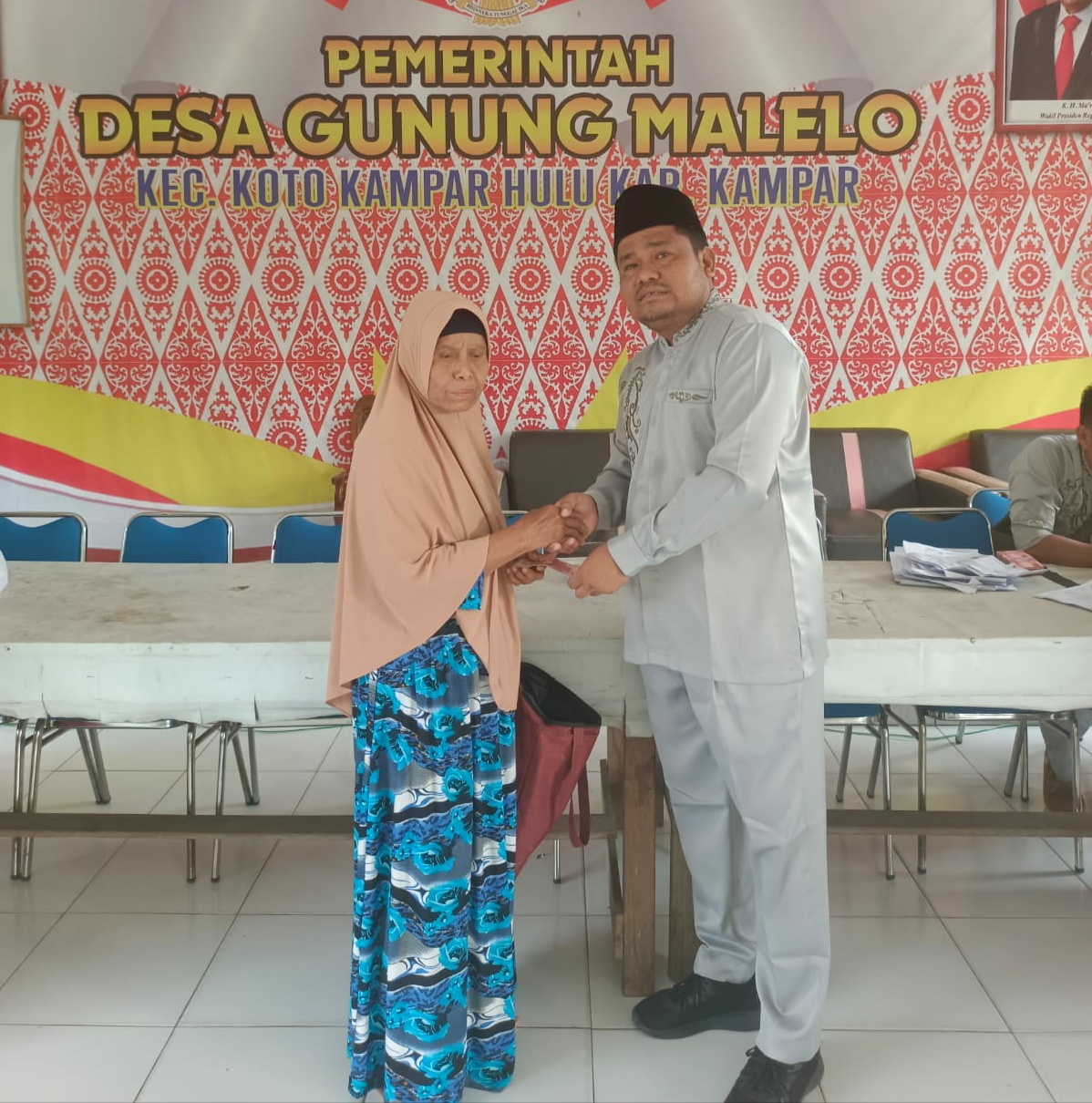 Kampar, reportaseindonesia.id | Pemerintah desa (Pemdes) Gunung Malelo bagikan Bantuan Langsung Tunai Dana Desa (BLT-DD) tahun 2022 kepada sebanyak Keluarga Penerima Manfaat (KPM) mulai dari bulan Oktober, November dan Desember sebesar Rp. 900.000 atau Rp. 300.000 perbulan, bertempat diaula kantor desa Gunung Malelo, Kecamatan Koto Kampar Hulu, Kabupaten Kampar, Provinsi Riau, Jumat pagi (4/11/2022).