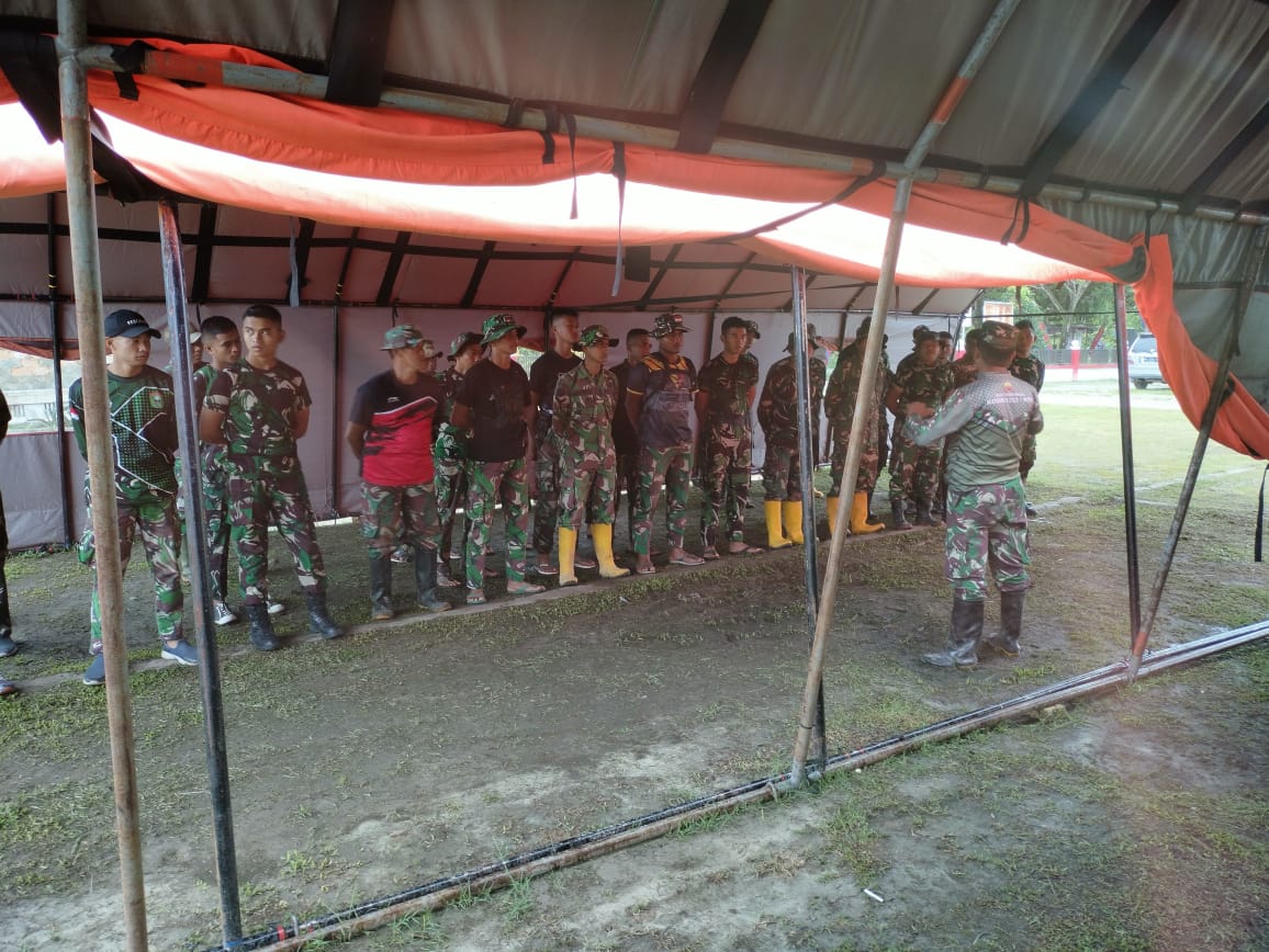 Lettu Inf Dedi,A.dm menjelaskan serta memberi arhan sebagai kaordinator lapangan dan ia mengingatkan kepada seluruh anggota agar selalu berhati -hati dalam bekerja, memberi semangat dengan dukungan moril hingga mencukupi bagi seluruh anggota satgas.
