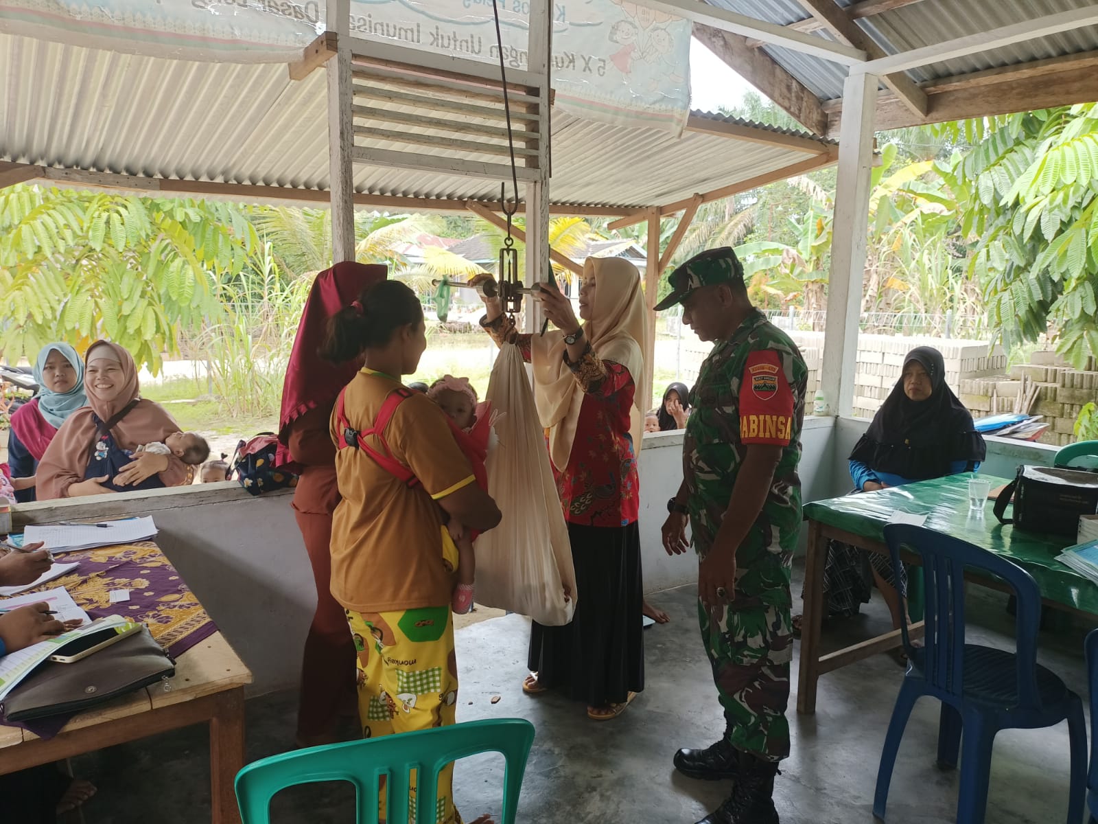 Rokan Hulu, reportaseindonesia.id |Babinsa Koramil 14/Kepenuhan Kodim 0313/Kpr, Sertu Hariyanto ikut serta mendampingi kegiatan Posyandu Balita yang dilaksanakan di Muara Jaya, Kecamatan Kepenuhan Hulu, Kabupaten Rokan Hulu, Provinsi Riau, Jum’at (18/11/2022).