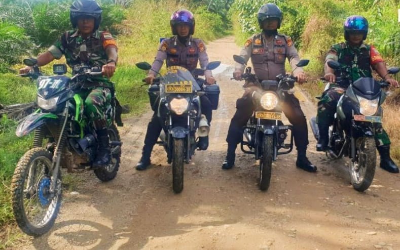 Babinsa Koramil 02 Rambah Kodim 0313/KPR ,Serka Basridul bersama Kopda Yuliarno dan personil personil Polsek Rambah Samo melaksanakan kegiatan patroli rutin, Senin (21/11/2022).