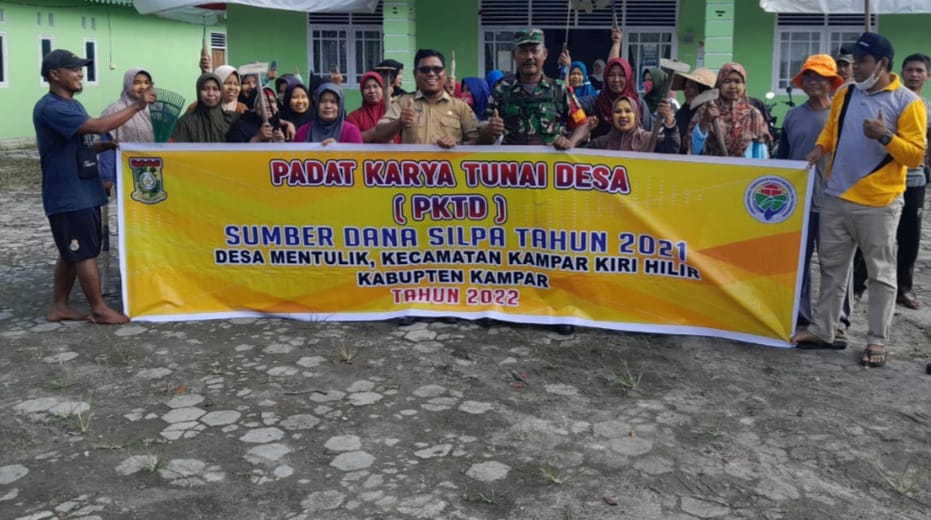 Kampar , reportaseindonesia.id |Sebagai Aparat yang mengawal program-program pembangunan di desa binaan, Babinsa Koramil 05/KK Kodim 0313/KPR, Serka Bambang Heriyanto hadir dalam kegiatan Padat Karya Tunai Desa (PKTD) Sumber Dana Silpa Tahun 2021 di Desa Mentulik, Kecamatan Kampar Kiri Hilir, Kabupaten Kampar, Selasa (27/12/2022).