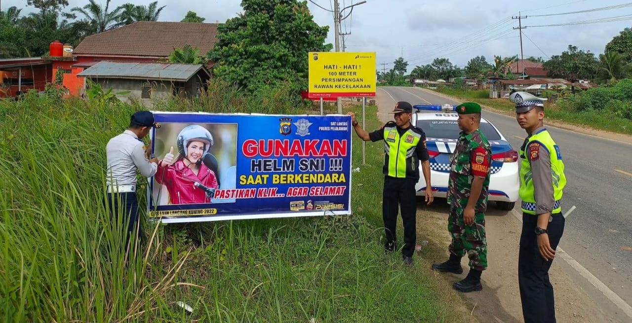 Tidak hanya itu babinsa dan polsek ukui juga memasan Banner yang berisi peringatan untuk menggunakan helm bagi pengendara motor, agara kelapa terlindungi dari bahaya.