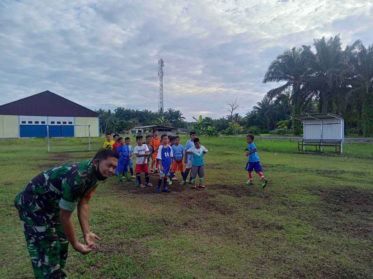 Tanamkan Olah Raga Sejak Dini, Babinsa Koramil 16/Tapung Sambangi Anak-anak Latihan Bola Kaki