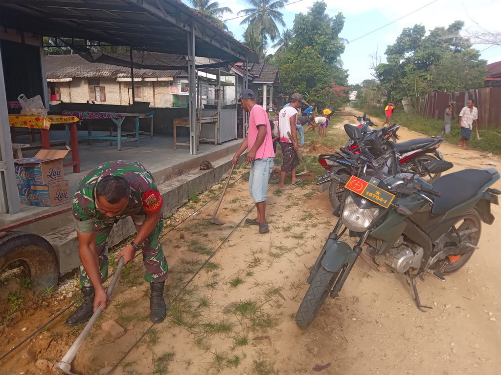 Dalam kesempatan itu, Babinsa dan masyarakat saling bahu membahu bergotong-royong membuat saluran air guna memperlancar aliran air serta mencegah terjadinya genangan air disekitar pemukiman warga saat musim hujan.