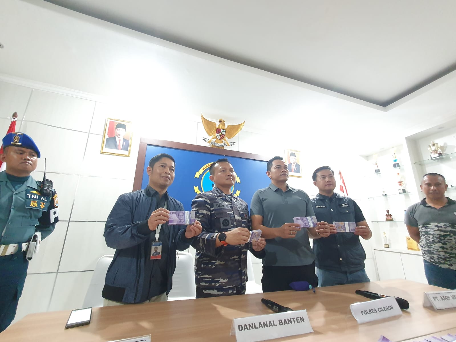 Komandan Lanal Banten Kolonel Laut (P) Dedi Komarudin dalam keterangan persnya di dampingi Satreskrim Polres Cilegon, pihak Bank Indonesia dan Pihak PT. ASDP Merak mengatakan bahwa terduga ditangkap petugas Lanal Banten yang saat itu sedang melaksanakan pengamanan kawasan Obyek Vital Nasional tepatnya di Pelabuhan Merak pada masa Libur tahun baru Imlek.