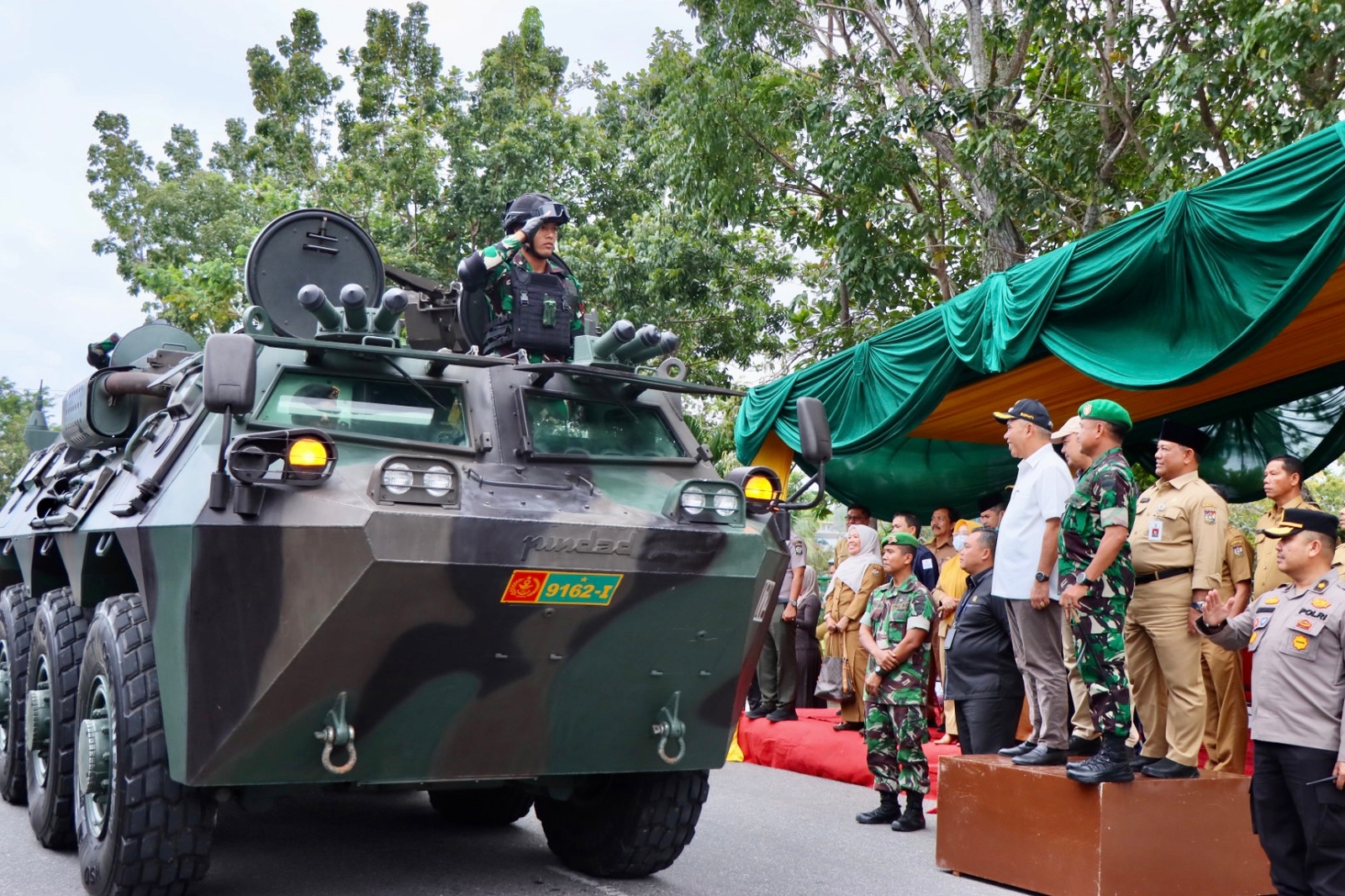Kampar, reportaseindonesia.id |Komandan Kodim 0313/Kpr, Letkol Muliyadi,S.I.P melakukan pelepasan Parade Karnaval Alutsista dalam Rawngka HUT Kabupaten Kampar Ke – 73 dilapangan Pelajar Jln A. Yani Bangkinang Kota, Kabupaten Kampar Riau, selasa (24/1/2023).