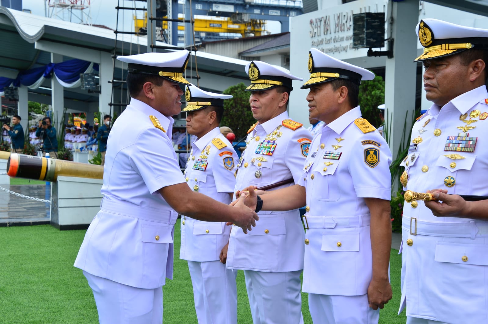 Adapun jabatan yang diserahterimakan di tank deck KRI BAC-593 adalah Koordinator Staf Ahli Kepala Staf Angkatan Laut (Koorsahli Kasal) dari Laksda TNI I.N.G. kepada Laksda TNI Tunggul Suropati, Asisten Intelijen (Asintel) Kasal dari Laksda TNI Dr. Angkasa Dipua kepada Brigjen TNI (Mar) Suaf Yanu Hardani, dan sertijab Asisten Komunikasi dan Elektronika (Askomlek) Kasal dari Laksda TNI Tunggul Suropati kepada Laksda TNI Dwika Tjahja Setiawan.