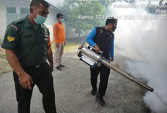 Rokan Hulu, reportaseindonesia.id |Petugas gabungan, Babinsa Koramil 10 Kunto Darusalaam Kodim 0313/KPR Serka Dedy Junianto, Puskesmas, bersama Pemerintah Desa Pagaran Tapah Kecamatan Pagaran Tapah Darusalaam Kabupaten Rokan Hulu melakukan fogging di area Kampung Pancasila.