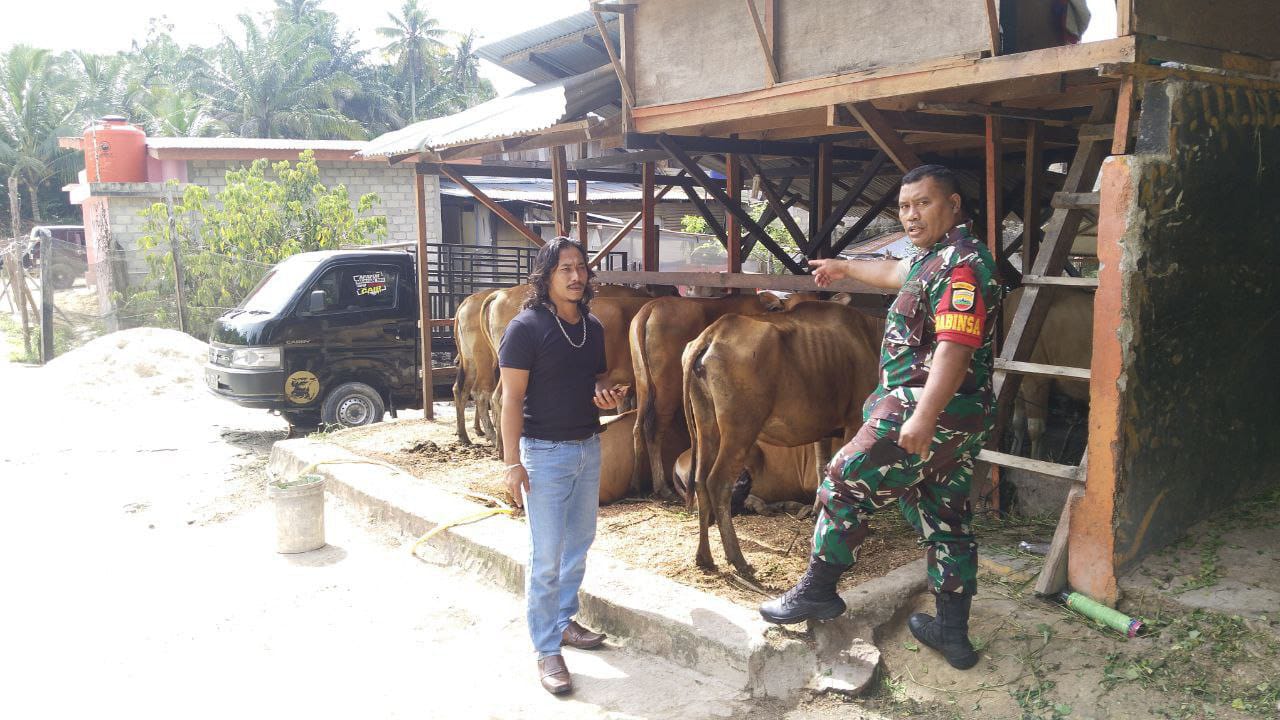 Kegiatan yang dilakukan yang dilaksanakan oleh Babinsa untuk mengetahui kesehatan bagi hewan ternak sehubungan sedang mewabahnya penyakit mulut dan kuku yang menyerang hewan ternak sebagai langkah pencegahan mewabahnya PMK pada hewan ternak milik warga desa binaan.