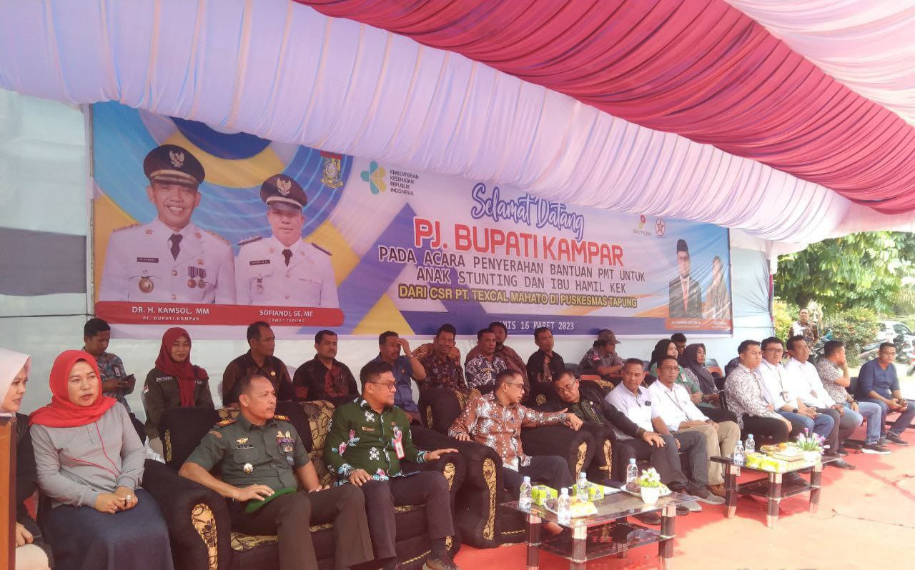 Kampar, reportaseindonesia.id | Kapten Arm Alza Septendi Danramil 16/Tapung Kodim 0313/Kpr dampingi Sekda Kampar ,H. Azwan beserta rombongan dalam penyerahan bantuan PMT untuk anak Stunting dan ibu hamil dari PT. Texal Mahato, bertempat di Puskesmas Tapung Desa Petapahan Kecamatan Tapung, Kabupaten Kampar, Jumat (17/3/2023).