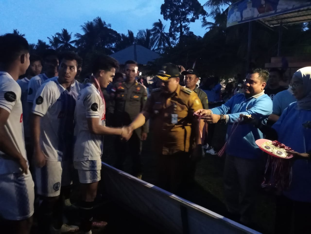 Kami mengucapkan terima kasih kepada saudara kepala desa Gunung Malelo serta terima kasih juga kepada kades- kades yang hadir, seperti kades Sibiruang ditunggu open turnamennya, kades Tabing ditunggu open turnamennya dan kepala desa yang lainnya ditunggu juga open turnamennya.