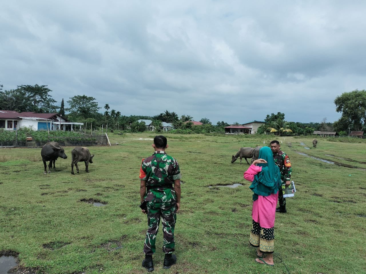 “Sosialisasi dan pengecekan kerbau milik warga, apabila ditemukan ciri atau gejala adanya penyakit mulut dan kuku, dihimbau kepada warga untuk segera melapor kepada Babinsa atau petugas keswan, “ucapnya.