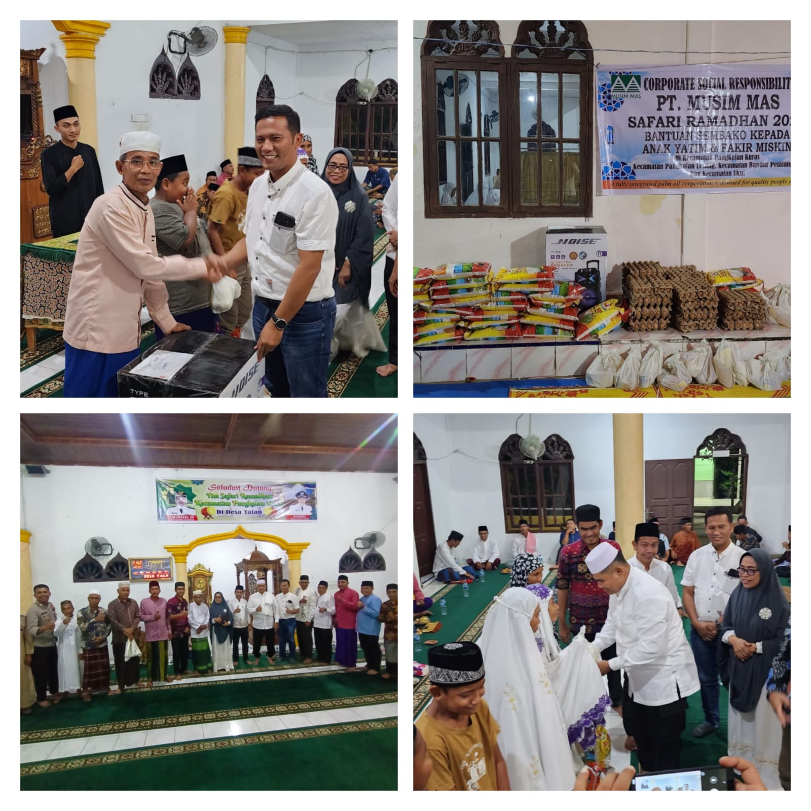 “Ya kita dari management PT. Musim Mas akan berbagi ke desa desa sekitar perusahaan sebagai wujud kepedulian kita terhadap kaum muslim yang ada di wilayah operasional kita khususnya dalam rangka menyambut bukan suci ramadhan. Semoga bantuan ini dapat bermanfaat bagi anak anak yatim duafa dan masjid masjid yang ada. Kita akan terus hadir bersama tim safari Ramadhan kecamatan pangkalan kuras, pangkalan lesung dan desa desa sekitar perusahaan”jelas malinton