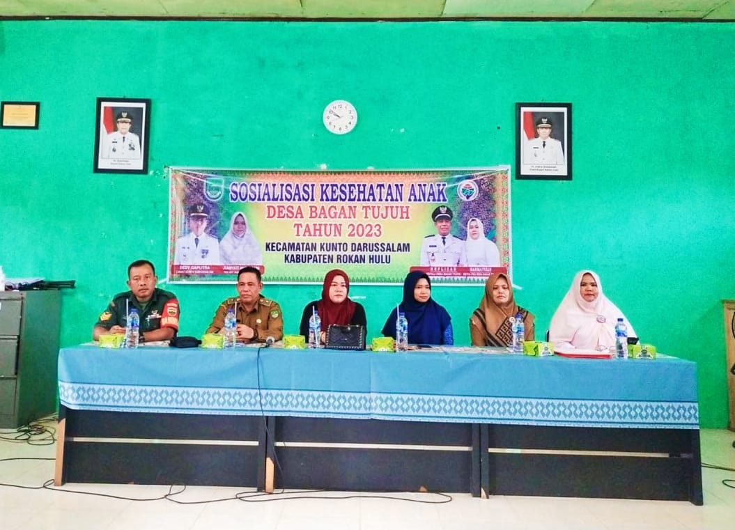Rokan Hulu, reportaseindonesia.id | Bintara Pembina Desa (Babinsa) Koramil 10 Kunto Darussalam Kodim 0313/KPR, Serka MJ. Ginting menghadiri kegiatan Sosialisasi Kesehatan Anak diaula Kantor Desa Bagan Tujuh, Kecamatan Kunto Darussalam , Kabupaten Rokan Hulu, Rabu (5/7/2023).