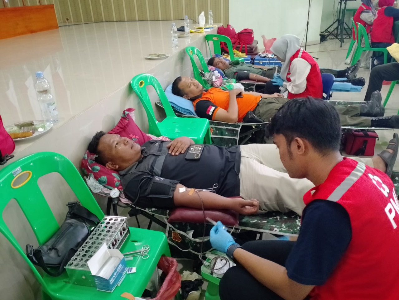 Bertemakan “TNI Patriot NKRI Pengawal Demokrasi Untuk Indonesia Maju” Kegiatan ini melibatkan tenaga kesehatan baik tenaga kesehatan Tni Ad dan tenaga kesehatan umum serta Palang Merah Indonesia guna pengecekan kesehatan seperti cek tensi,cek HB darah dan asam urat sebelum melakukan pengambilan darah.