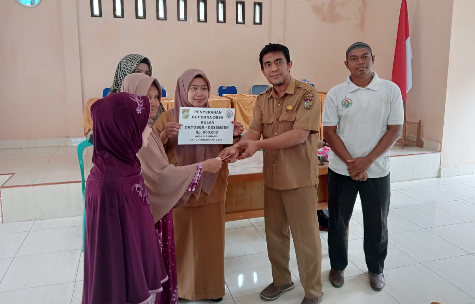 Kampar, reportaseindonesia.id | Pemerintah desa ( Pemdes) Sibiruang Membagikan BLT-DD ( Bantuan Langsung Tunai Dana Desa) tahap IV atau tahap terakhir untuk bulan Oktober, November serta Desember sebesar Rp 900.000 kepada sebanyak 65 KPM ( Keluarga Penerima Manfaat), bertempat digedung Serba Guna desa Sibiruang, Kecamatan Koto Kampar Hulu, Kabupaten Kampar, Provinsi Riau, Senin pagi (4/12/2023).